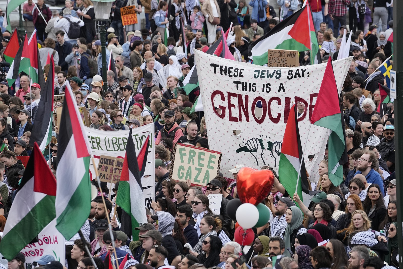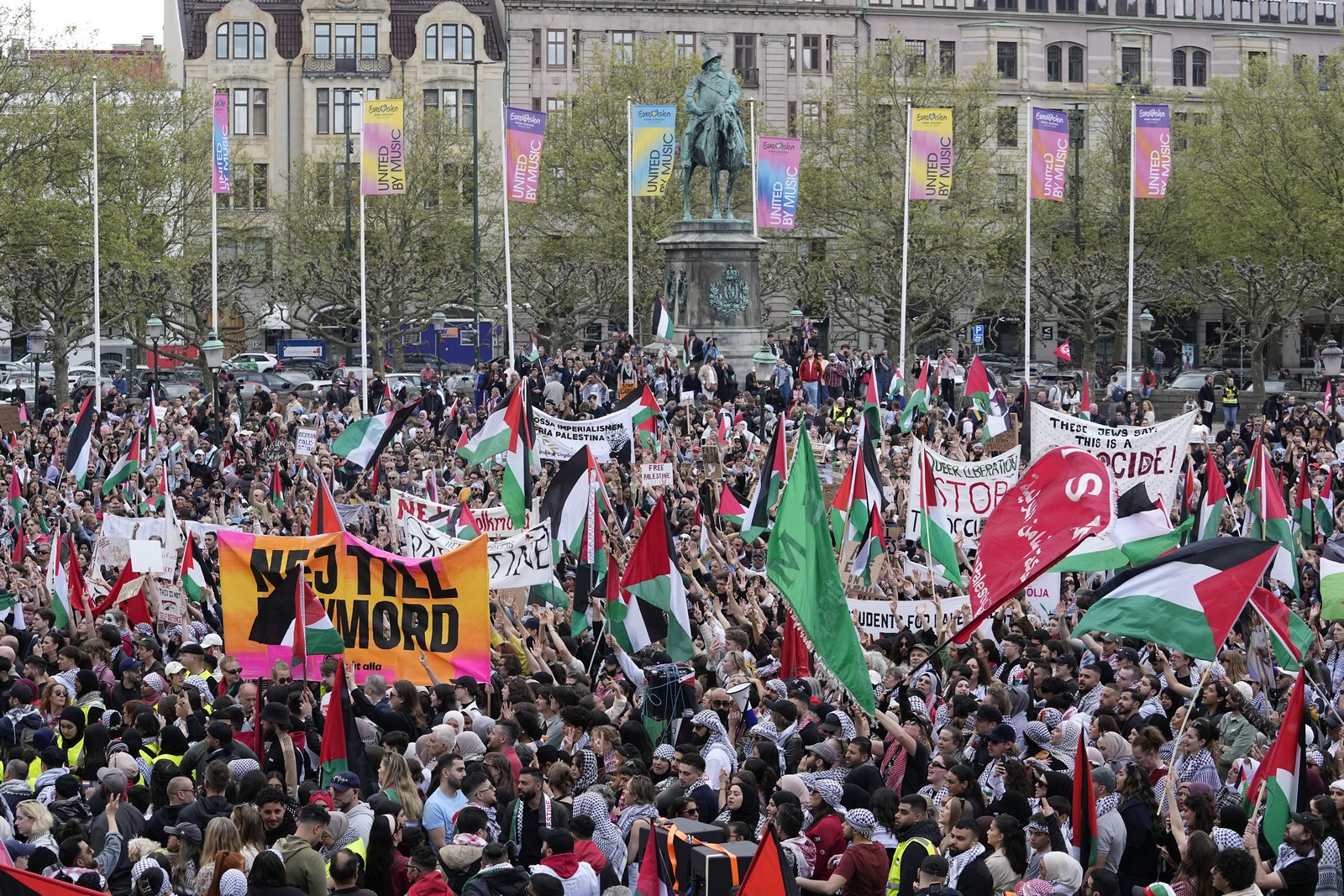 Χιλιάδες κόσμου ξεχύθηκαν στους δρόμους του Μάλμε της Σουηδίας, της πόλης που φιλοξενεί τη φετινή Eurovision, διαδηλώνοντας υπέρ της Παλαιστίνης, λίγο πριν τον τελικό του μουσικού διαγωνισμού.