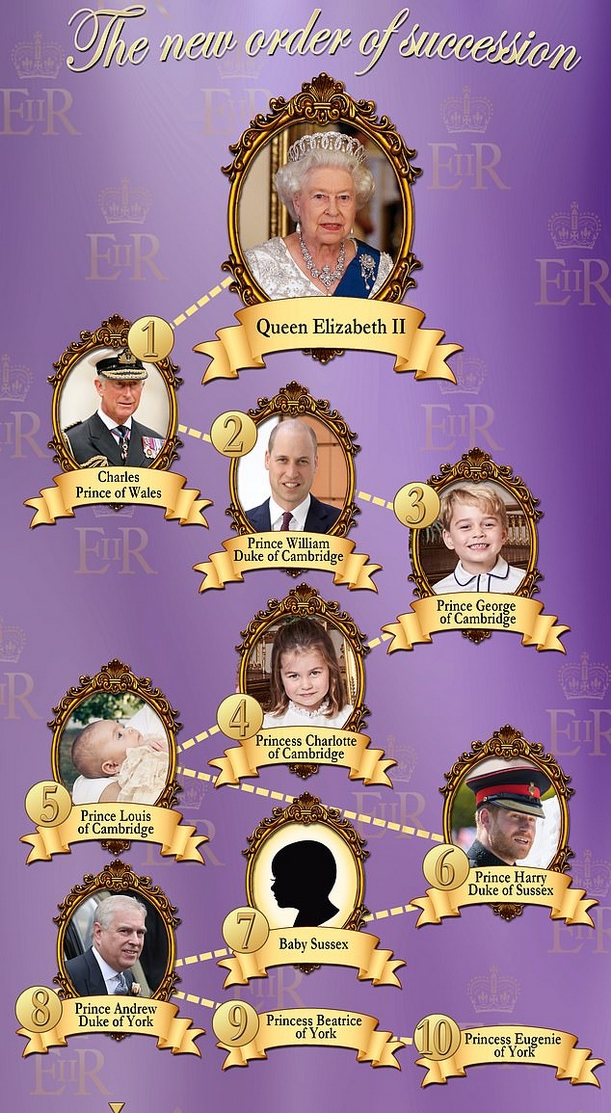 Η αλήθεια είναι ότι το μικρός (baby sussex) έρχεται μόλις 7ος στη σειρά της διαδοχής της Βασίλισσας Ελισσάβετ έχοντας μπροστά του…στρατό από υποψηφίους βασιλιάδες.