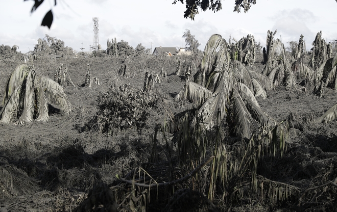 Η στάχτη που εκτοξεύεται από το ηφαίστειο Ταάλ έχει καλύψει τα πάντα στις κοντινές περιοχές, με το τοπίο να είναι απόκοσμο.