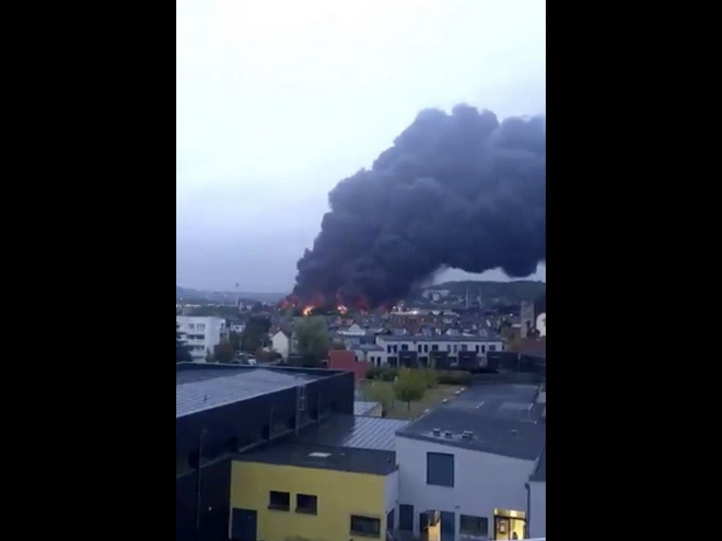 Μεγάλη φωτιά σε εργοστάσιο στη Γαλλία Twitter