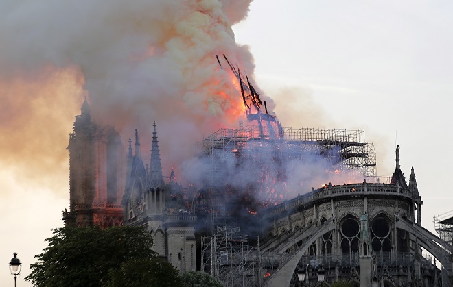 Η στέγη του Καθεδρικού Ναού της Παναγίας των Παρισίων κατέρρευσε εντελώς.