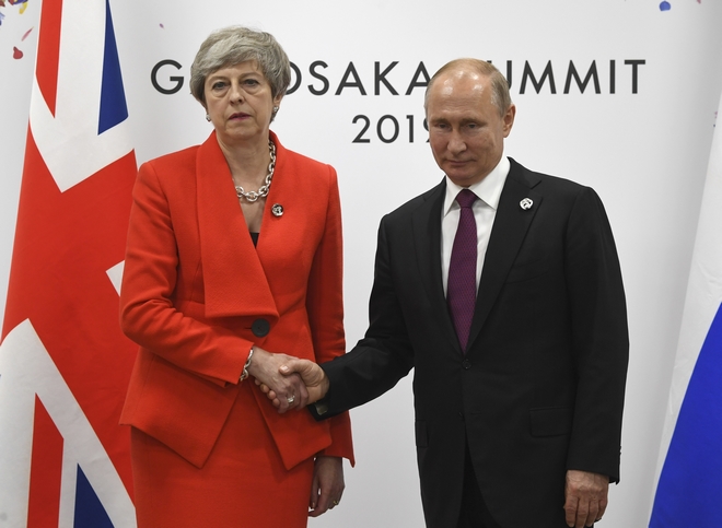 Ο Πούτιν είχε την Παρασκευή συνάντηση με την Μέι στην σύνοδο της G20 στην Οσάκα της Ιαπωνίας. Το γραφείο της Μέι ανακοίνωσε ότι ζήτησε από τη Μόσχα να της παραδώσει τους ρώσους υπόπτους, τους οποίους το Λονδίνο κατηγορεί για την δηλητηρίαση του Σεργκέι Σκριπάλ και της κόρης του με νευροτοξικό παράγοντα στο Σάλσμπερι της Αγγλίας τον περασμένο χρόνο.