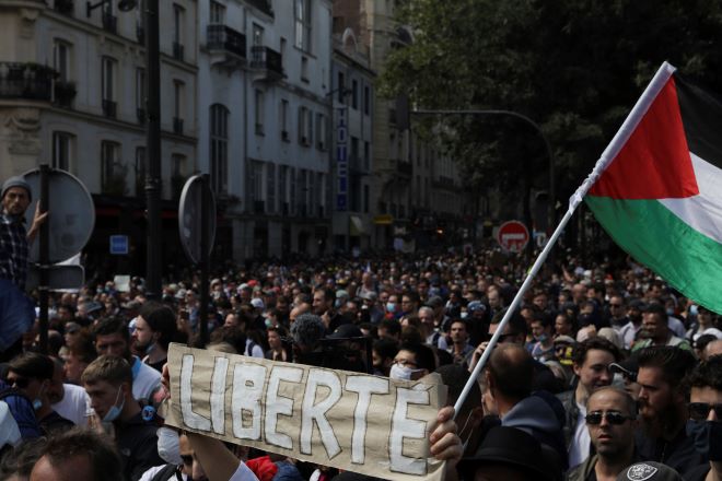 Φωνάζοντας συνθήματα όπως «Ελευθερία» και «Όχι στο πιστοποιητικό» χιλιάδες άνθρωποι διαδήλωσαν το Σάββατο στη Γαλλία ενάντια στην υποχρεωτική κάρτα υγείας.