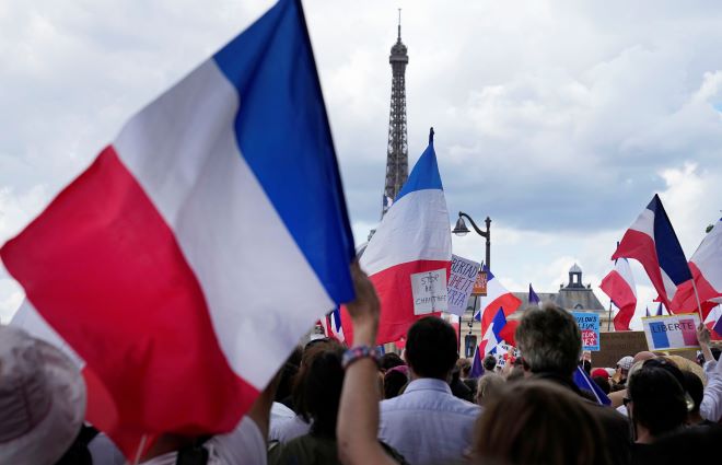 Είναι το τρίτο Σαββατοκύριακο που όσοι αντιτίθενται στα νέα μέτρα τα οποία προωθεί ο πρόεδρος Εμανουέλ Μακρόν βγαίνουν στους δρόμους, σε μια ασυνήθιστη επίδειξη αποφασιστικότητας την ώρα που οι περισσότεροι Γάλλοι οργανώνουν τις θερινές διακοπές τους.