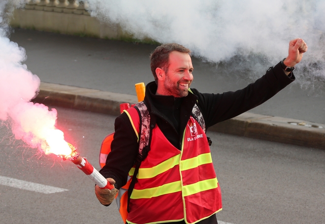 Εργαζόμενοι στον σιδηροδρομικό τομέα, δάσκαλοι και ιατρικό προσωπικό έδωσαν το παρόν σε μία από τις μεγαλύτερες απεργιακές κινητοποιήσεις της τελευταίας δεκαετίας, αποφασισμένοι να αναγκάσουν την κυβέρνηση του προέδρου Εμανουέλ Μακρόν να εγκαταλείψει τα σχέδιά της να αναδιαμορφώσει το γενναιόδωρο συνταξιοδοτικό σύστημα της χώρας.