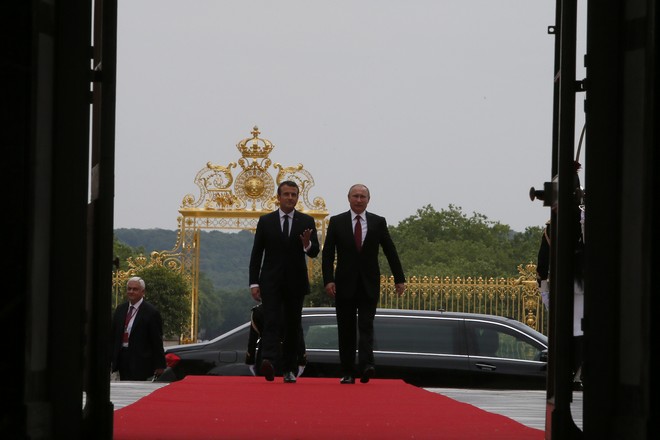 Ο Εμμανουέλ Μακρόν υποδέχθηκε με μεγάλη επισημότητα σήμερα γύρω στις 14:15 (τοπική ώρα) τον ρώσο ομόλογό του Βλαντίμιρ Πούτιν στο ανάκτορο των Βερσαλλιών για την πρώτη τους συνάντηση κατά την οποία θα συζητήσουν μια σειρά θεμάτων, στην πρώτη γραμμή των οποίων βρίσκεται η κατάσταση στη Συρία και την Ουκρανία.