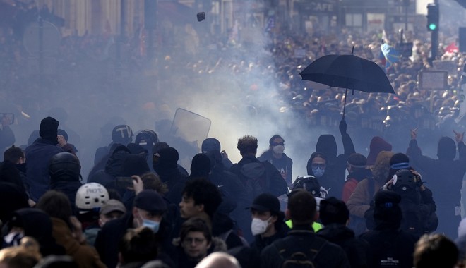 Συγκρούσεις μεταξύ διαδηλωτών και αστυνομίας σημειώθηκαν στη διαδήλωση στο Παρίσι, ενώ η αστυνομία έκανε ευρεία χρήση δακρυγόνων για να καταστείλει τους διαδηλωτές.