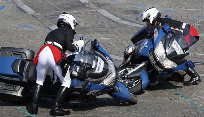 Οι δύο αστυνομικοί εκτελούσαν φιγούρες, στο πλαίσιο μιας “χορογραφίας” στην οποία συμμετείχαν μοτοσικλέτες, άλογα και πεζοί στρατιώτες. Οι αστυνομικοί πάντως σηκώθηκαν πολύ γρήγορα, υπό το βλέμμα του προέδρου Μακρόν, ο οποίος τους χαμογέλασε με κατανόηση.