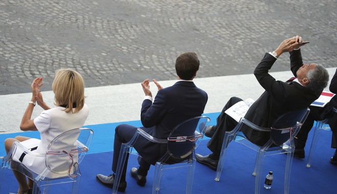 Ένα λάθος και ένα μικρό ατύχημα, μπροστά στα μάτια του Γάλλου προέδρου Εμανουέλ Μακρόν, σημάδεψαν τη σημερινή παρέλαση της 14ης Ιουλίου που είναι και η εθνική επέτειος της Γαλλίας στο Σανζ Ελιζέ, όπου οι Γάλλοι ελπίζουν ότι θα συγκεντρωθούν και πάλι αύριο το βράδυ για να γιορτάσουν ξανά, εφόσον κερδίσουν στον τελικό του Μουντιάλ.