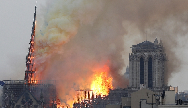 Μεγάλη φωτιά εκδηλώθηκε το απόγευμα της Δευτέρας στον Καθεδρικό της Παναγιάς των Παρισίων, στο Παρίσι. Κατέρρευσαν μεγάλα τμήματα του ναού. Τραυματίστηκε πυροσβέστης. Τεράστιες προσπάθειες να σωθεί το κεντρικό οικοδόμημα. Συγκλονισμένη η παγκόσμια κοινότητα.