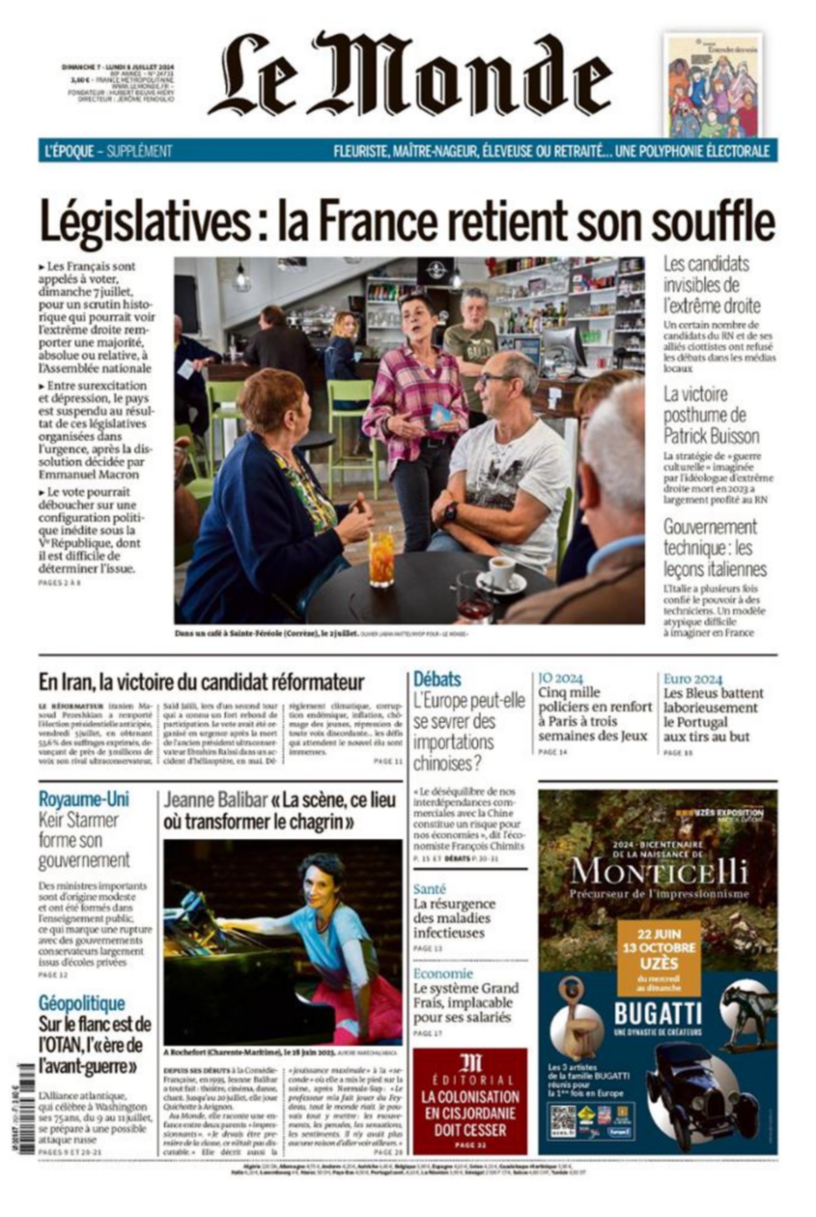 Ανακούφιση, αγωνία, αλλά και αβεβαιότητα… Αυτά είναι τα συναισθήματα που αναβλύζουν από τα σημερινά πρωτοσέλιδα των γαλλικών και άλλων διεθνών εφημερίδων για το εκλογικό αποτέλεσμα στη Γαλλία, με την έκπληξη της Αριστεράς και την ήττα της Λεπέν που βρέθηκε τρίτη.