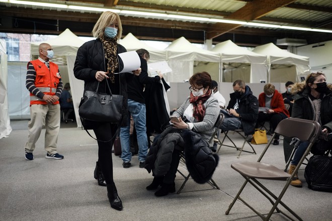 Γάλλοι πολίτες σε εμβολιαστικό κέντρο 2021 Laurent Cipriani/AP Photo