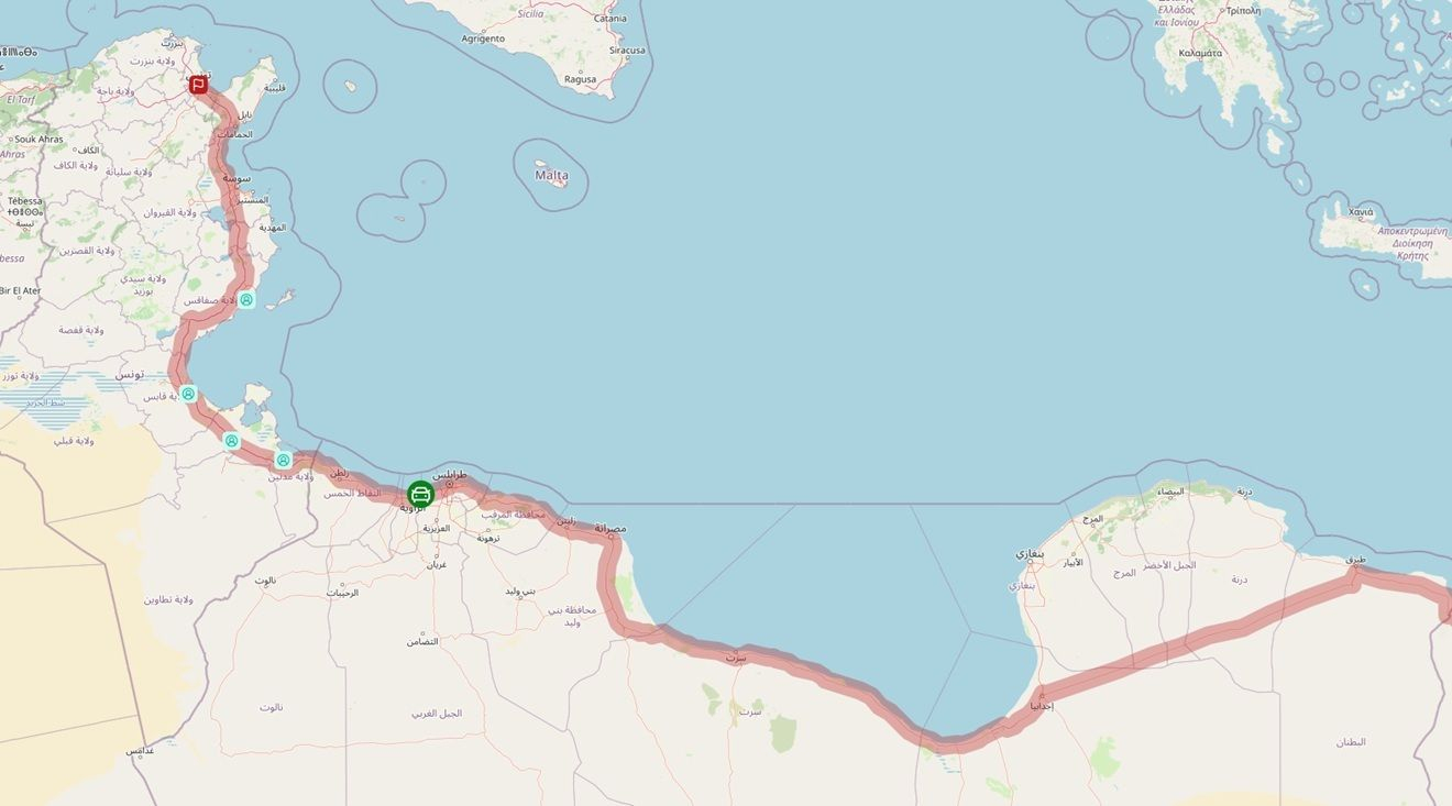Η αυτοκινητοπομπή πέρασε στη συνέχεια από τις περιοχές Σούσα, Σφαξ, Γκάμπες και Μπεν Γκουερντάν, πριν φτάσει στη Λιβύη.