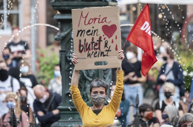 Σε περίπου 60 γερμανικές πόλεις πραγματοποιήθηκαν την Τετάρτη το βράδυ συγκεντρώσεις και διαδηλώσεις με αφορμή την καταστροφή του προσφυγικού καταυλισμού στη Μόρια. Χιλιάδες άτομα ακολούθησαν την πρόσκληση της Διεθνούς Ομοσπονδίας των Δικαιωμάτων των Ανθρώπων και άλλων ανθρωπιστικών οργανώσεων να συμμετέχουν στις διαδηλώσεις. Τα αιτήματά τους ήταν η εκκένωση των καταυλισμών στα ελληνικά νησιά και ή άμεση υποδοχή προσφύγων στη Γερμανία και σε άλλα κράτη της ΕΕ.
