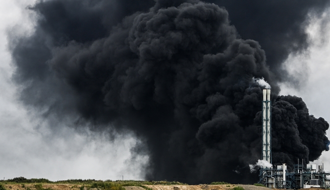 Πυκνός μαύρος καπνός έχει κατακλύσει την περιοχή και οι κάτοικοι ειδοποιήθηκαν με μήνυμα για “ακραίο κίνδυνο”, μέσω της εφαρμογής “ΝΙΝΑ”, της Πολιτικής Προστασίας, να παραμείνουν σε κλειστούς χώρους, με κλειστά παράθυρα και πόρτες.