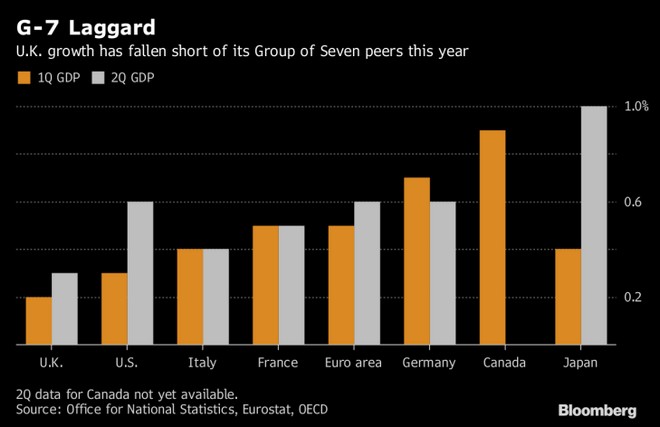 Οι επιπτώσεις στην Βρετανική οικονομία αποτυπώνονται σε δυο πίνακες. Την ανάπτυξη στα δυο πρώτα τρίμηνα του 2017, όπου η το Η.Β. παρουσιάζει σημαντική επιδείνωση, παρά την αύξηση εξαγωγών λόγω πτώσης της λίρας . Και την πορεία του νομίσματος που θίγει τα λαϊκά στρώματα, αυξάνει τις ανάγκες χρηματοδότησης της οικονομίας και αντανακλά στο μέλλον της ισχύος μετά την Έξοδο.