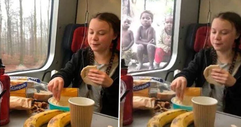 Γκρέτα Τούνμπεργκ: Η αλήθεια για το καρέ που τρώει μπροστά σε πεινασμένα παιδάκια