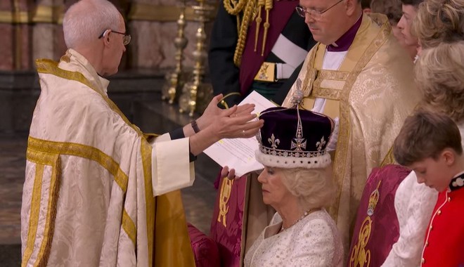 Αμέσως μετά τη στέψη του βασιλιά Καρόλου Γ’ στο Αβαείο του Γουέστμινστερ το πρωί του Σαββάτου (06/05) πραγματοποιήθηκε και η στέψη της βασίλισσας Καμίλα από τον αρχιεπίσκοπο του Καντέρμπουρι.