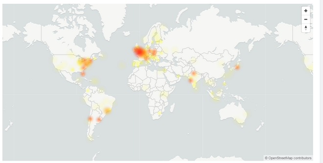 Σε χάρτη του Down Detector, φαίνονται οι περιοχές στις οποίες έχουν αναφερθεί τα περισσότερα προβλήματα. Πρόκειται, πρακτικά, για όλο τον πλανήτη.