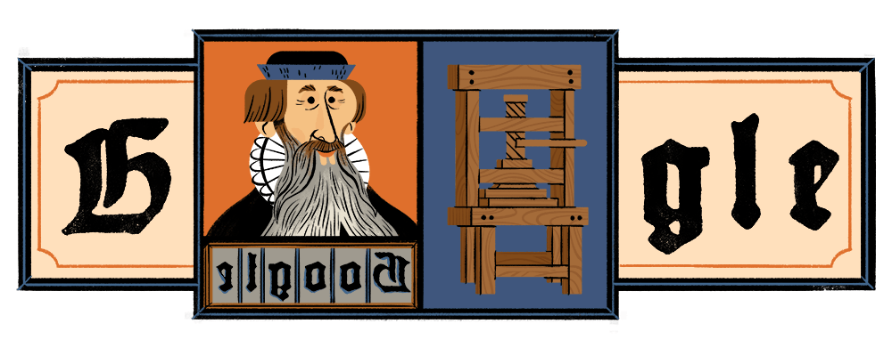Η Google αφιερώνει ένα Doodle στον Ιωάννη Γουτεμβέργιο, τον εφευρέτη της τυπογραφίας. Ο Γουτεμβέργιος γεννήθηκε στην Γερμανία και ήταν σιδηρουργός, τυπογράφος και εκδότης.