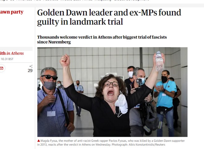“Ο αρχηγός της Χρυσής Αυγής και πρώην βουλευές είναι ένοχοι. Ηταν η μεγαλύτερη δίκη φασιστών μετά από αυτή της Νυρεμβέργης.