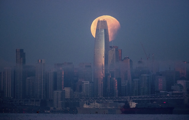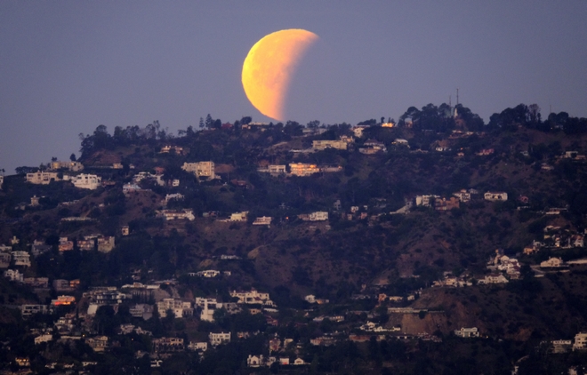 Την Τετάρτη υπήρξε επίσης ολική έκλειψη υπερ-Σελήνης, στη διάρκεια της οποίας τρία φαινόμενα σχεδόν συνέπεσαν: η πανσέληνος, το κοντινό πλησίασμα του δορυφόρου μας στη Γη και η ολική έκλειψη της Σελήνης.