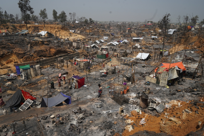 Η τεράστια φωτιά στους καταυλισμούς του Cox Bazar στο Μπαγκλαντές πριν από μερικές εβδομάδες παγίδεψε πολλούς πρόσφυγες ανάμεσα στις φλόγες και τους φράκτες που περιβάλλουν την περιοχή. Αυτό το τραγικό συμβάν ήρθε να προστεθεί στις ήδη άσχημες συνθήκες όπου ζουν χιλιάδες πρόσφυγες Ροχίνγκια από την Μιανμάρ. Η κλινική των Γιατρών Χωρίς Σύνορα καταστράφηκε ολοσχερώς από τη φωτιά, όμως πολύ γρήγορα φτιάχτηκε από την αρχή και ήδη λειτουργεί ξανά. Οι μαρτυρίες προσφύγων δείχνουν την τεράστια αγωνία τους να ξεφύγουν από τις φλόγες που τους πλησίαζαν απειλητικά.