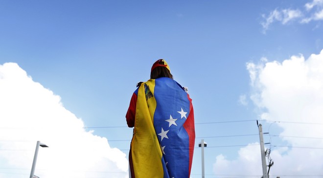 Άνδρας με την σημαία της Βενεζουέλας AP