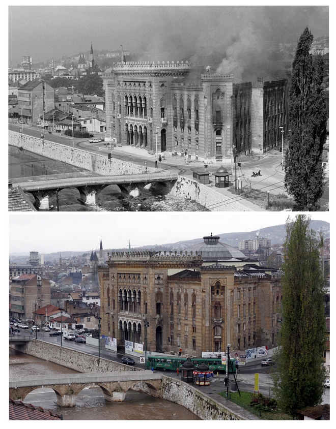 Τη νύχτα της 25ης προς 26η Αυγούστου 1992, από τα βουνά που δεσπόζουν στο Σαράγεβο, Σέρβοι στρατιώτες πυρπολούν την εθνική βιβλιοθήκη της Βοσνίας, ένα κτίριο που κατασκευάστηκε το 1896.