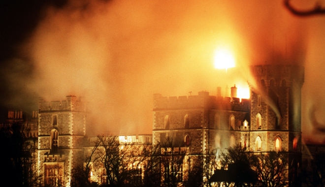 Στις 20 Νοεμβρίου 1992, όλη η βορειοανατολική πλευρά του πύργου του Ουίνδσορ, της βασιλικής κατοικίας δυτικά του Λονδίνου, επλήγη από πυρκαγιά. Η φωτιά που παραλίγο να εξαπλωθεί στα ιδιωτικά διαμερίσματα της βασίλισσας, ξεκίνησε μέσα από το παρεκκλήσι όπου ένας προβολέας τοποθετημένος πολύ κοντά σε κουρτίνα, ήταν αιτία να πιάσει φωτιά το ύφασμα.