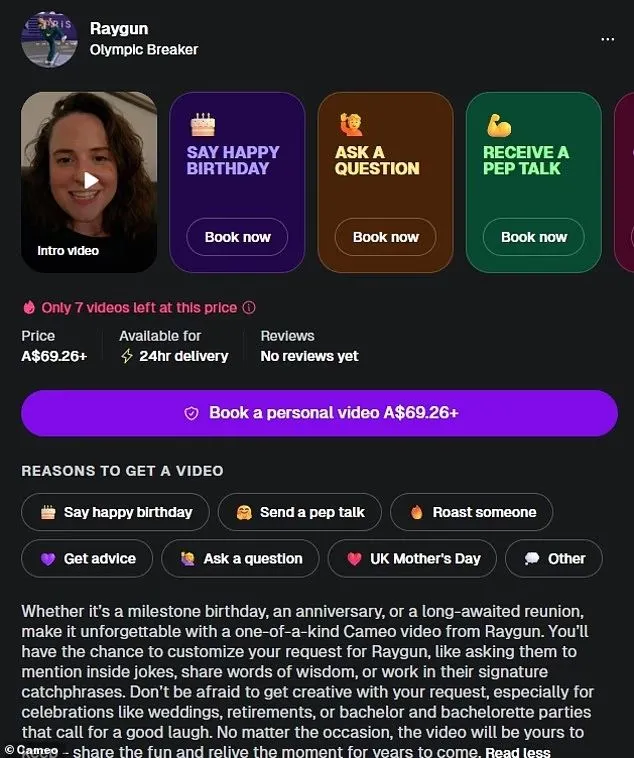 Αυτές τις μέρες το όνομά της επανήλθε στη δημοσιότητα καθώς έγινε γνωστή η νέα “επαγγελματική της προσπάθεια”, η οποία βασίζεται στο funding από θαυμαστές στο διαδίκτυο. Η Raygun έκανε γνωστό συγκεκριμένα, πως μπήκε στην πλατφόρμα βίντεο Cameo, όπου χρεώνει πάνω από 49 δολάρια για να ανταλλάξει μηνύματα με ακολούθους της. Ο ιστότοπος περιλαμβάνει μια πληθώρα διασημοτήτων, ηθοποιών και αθλητών από όλο τον κόσμο, με τους χρήστες να πληρώνουν για να λάβουν εξατομικευμένα μηνύματα.