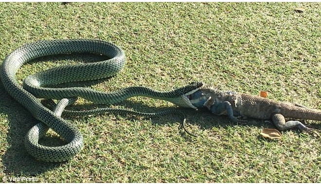 Παρά το μέγεθος του, το ιγκουάνα υπέκυψε στο φίδι.