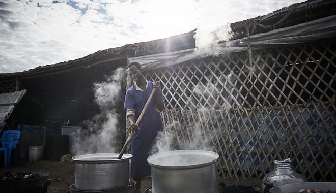 Ένας ιδιοκτήτης πάγκου ετοιμάζει πρωινό για τους πελάτες του στην αγορά της πόλης Abyei. Christina Simons