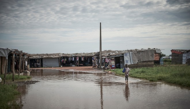 Η τοπική αγορά πλημμυρίζει συχνά στην πόλη Abyei. Οι άνθρωποι εξακολουθούν να περπατούν μέσα στο νερό για να μπουν και να βγουν από την αγορά. Christina Simons