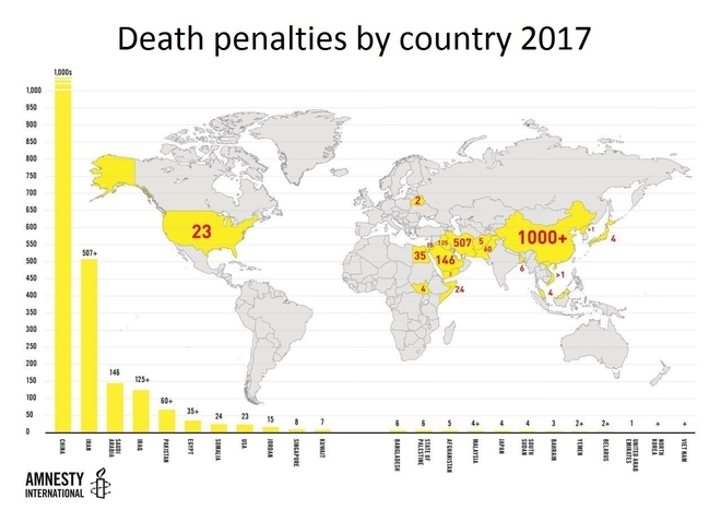Οι θανατικές ποινές ανά χώρα το 2017 σύμφωνα με την Διεθνή Αμνηστία Amnesty International