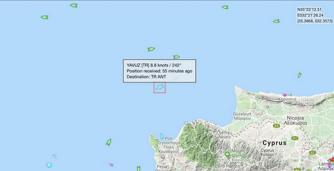Ανοιχτά της Πάφου κατευθυνόμενο προς το τουρκικό γεωτρύπανο Φατίχ βρίσκεται και το δεύτερο τουρκικό γεωτρύπανο Γιαβούζ σύμφωνα με την Marine Traffic την ιστοσελίδα μέσα από την οποία φαίνονται οι κινήσεις των πλοίων διεθνώς.