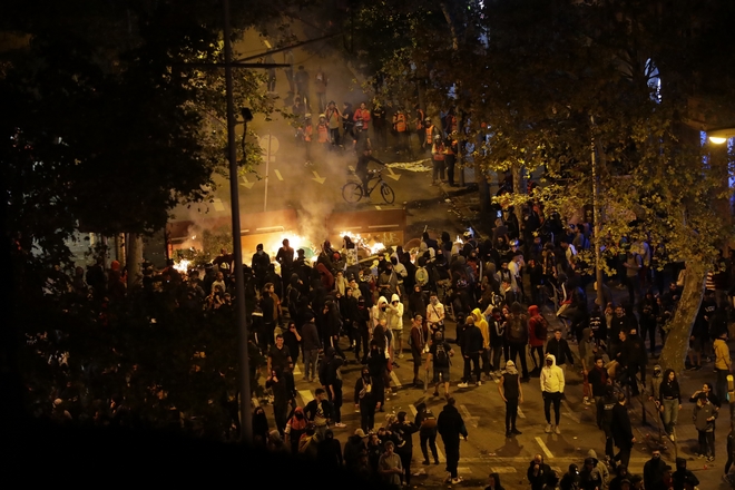 Το βράδυ της Παρασκευής 18 Οκτωβρίου, η Βαρκελώνη έζησε την πιο έντονη νύχτα αστικών ταραχών των τελευταίων δεκαετιών, με περίπου 525.000 ανθρώπους να κατακλύζουν τους δρόμους της πόλης. Φωτιές σε κάδους, πετροπόλεμος διαδηλωτών με δυνάμεις της Αστυνομίας, η οποία απαντούσε με ρίψη δακρυγόνων και πλαστικών σφαιρών.