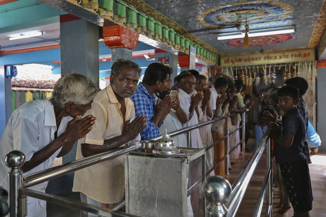 Λίγες ώρες πριν από τις προεδρικές εκλογές των ΗΠΑ, άνθρωποι που ζουν μέσα και γύρω από το Thulasendrapuram, το χωριό του παππού της Χάρις, συγκεντρώθηκαν σε έναν ναό για ειδικές προσευχές.
