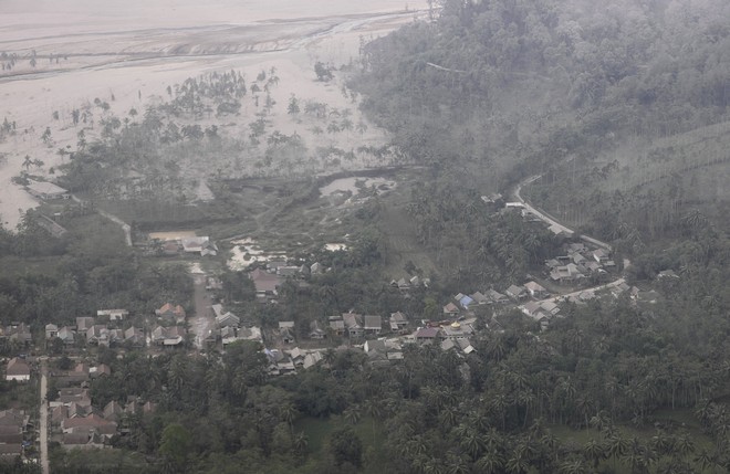 Στην περιοχή Σουμπεργούλουχ, πυκνό στρώμα στάχτης έχει σκεπάσει τα κατεστραμμένα σπίτια. Εθελοντές προσπαθούν να απομακρύνουν τους οδηγούς που θέλουν να επιστρέψουν στα σπίτια τους κοντά στο Σεμέρου, μεταδίδει το Reuters.