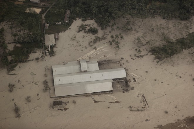 Εργοστάσιο καλυμμένο από στάχτη μετά τη φονική έκρηξη του ηφαιστείου Σεμέρου 2021 Trisnadi/AP Photo