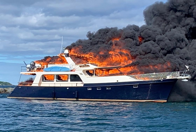Οι τρεις επιβάτες, καθώς και τα δύο σκυλιά τους, πήδηξαν στη θάλασσα ενώ το σκάφος τυλίχθηκε στις φλόγες. Όλοι τους περισυνελέγησαν από άλλα σκάφη.