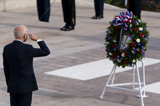 Φόρο τιμής απέτισε ο Τζο Μπάιντεν σήμερα στους βετεράνους, “πυλώνες της Αμερικής“, κατά τη διάρκεια τελετής στο στρατιωτικό νεκροταφείο του Άρλινγκτον, στα προάστια της Ουάσινγκτον, με αφορμή την εκατονταετηρίδα από την ταφή του άγνωστου στρατιώτη.