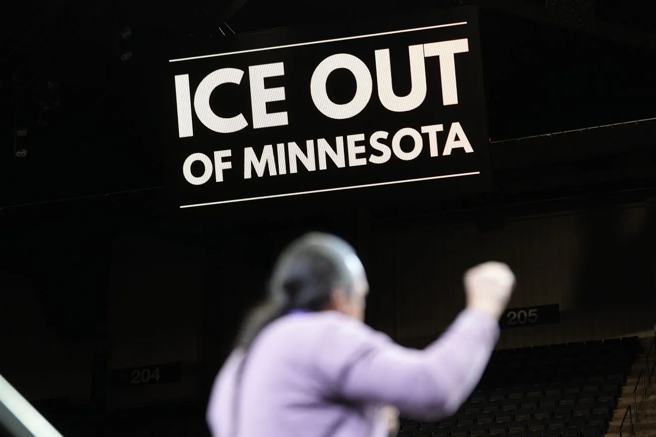 “Μην έχετε καμία αμφιβολία, αντιμετωπίζουμε πλήρη ομοσπονδιακή κατοχή από την κυβέρνηση των Ηνωμένων Πολιτειών μέσω της ICE σε μη παραχωρημένη γη των Ντακότα”, δήλωσε η Rachel Dionne-Thunder, αντιπρόεδρος του Indigenous Protector Movement, στο πλήθος που είχε συγκεντρωθεί στο Target Center.