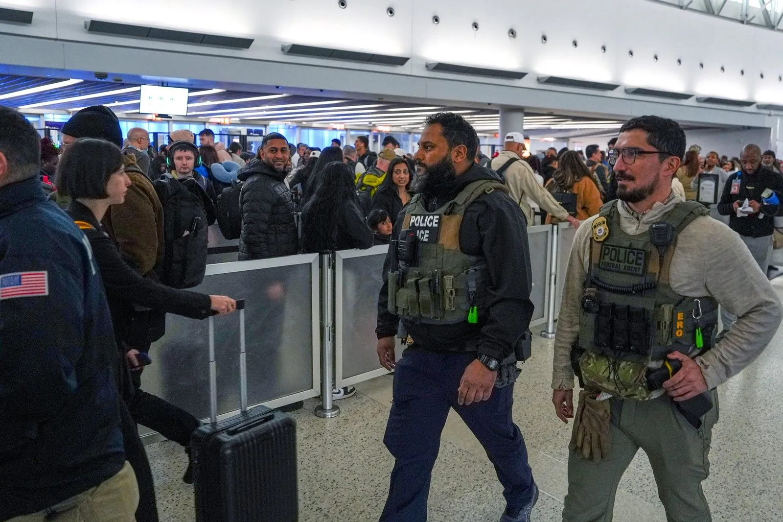 Πράκτορες της ICE και της υπηρεσίας Ερευνών Εσωτερικής Ασφάλειας (Homeland Security Investigations) έχουν αναπτυχθεί σε 14 αεροδρόμια, δήλωσαν αξιωματούχοι στο Reuters, συμπεριλαμβανομένων αυτών της Ατλάντα, του JFK στη Νέα Υόρκη, του Κλίβελαντ, του Πίτσμπουργκ, του Φοίνιξ και του Φορτ Μάγιερς.