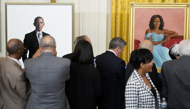 Τα αποκαλυπτήρια των επίσημων πορτρέτων του πρώην προεδρικού ζεύγους των ΗΠΑ έγιναν το βράδυ της Τετάρτης στον Λευκό Οίκο.