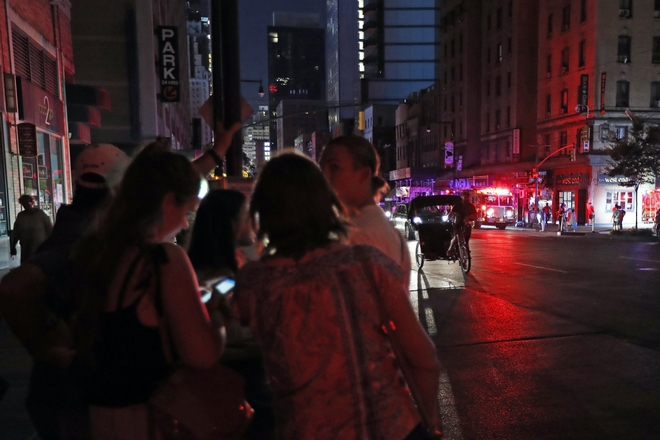 Πλήρης ήταν η διακοπή ρεύματος στο Μπρόντγουεϊ και το Χελς Κίτσεν πιο δυτικά, με τους φωτεινούς σηματοδότες να έχουν πάψει να λειτουργούν και τις διαφημιστικές πινακίδες στην Τάιμς Σκουέρ να έχουν σβήσει.
