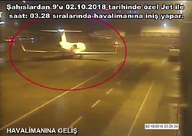 Σύμφωνα με το “Middle East Eye”, οι Τούρκοι έχουν στην κατοχή τους βίντεο που εμφανίζει τον Μουτρίμπ να αναχωρεί από το αεροδρόμιο Ατατούρκ με ιδιωτικό τζετ στις 2 Οκτωβρίου, την ημέρα δηλαδή της εξαφάνισης του δημοσιογράφου στο προξενείου της Κωνσταντινούπολης, κρατώντας μια “πολύ μεγάλη βαλίτσα”. Σύμφωνα με τα βίντεο από τις κάμερες ασφαλείας που “χτενίζουν” οι τουρκικές υπηρεσίες, ο Μουτρίμπ αναχώρησε με το ιδιωτικό αεροσκάφος το απόγευμα αυτής της ημέρας, στις 18:20. Ταξιδεύοντας ως VIP, οι αρχές δεν έκαναν έλεγχο στο αεροσκάφος ή τις αποσκευές του, αφού δεν είχε ακόμη σημάνει συναγερμός για την εξαφάνιση του Κασόγκι.