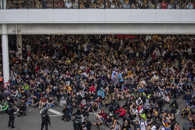 Χιλιάδες διαδηλωτές είχαν συγκεντρωθεί έξω από το αεροδρόμιο για να αποκλείσουν τις εισόδους του, αντιδρώντας έτσι στην καταδίκη από το ανώτατο δικαστήριο της Ισπανίας εννέα αυτονομιστών σε ποινές κάθειρξης από εννέα έως 13 χρόνια για τον ρόλο τους στην απόπειρα απόσχισης της Καταλονίας το 2017, γράφει η εφημερίδα El Mundo.