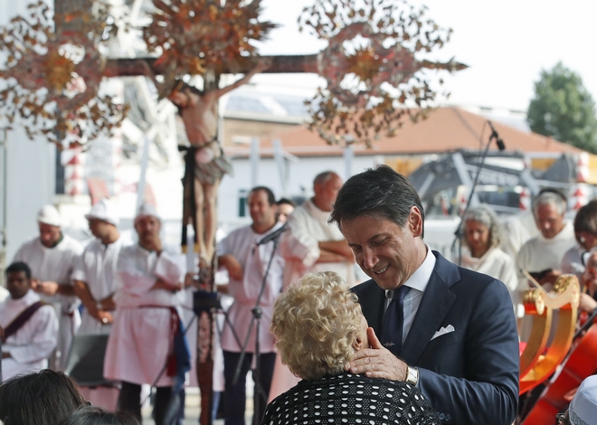 Παρά την πολιτική κρίση στη Ρώμη, ο αρχηγός του ιταλικού κράτους, ο πρόεδρος Σέρτζο Ματαρέλα, ο πρωθυπουργός Τζουζέπε Κόντε, ηγέτες κομμάτων –ο Ματέο Σαλβίνι της Λέγκας και ο Λουίτζι ντι Μάιο του Κινήματος των 5 Αστέρων– καθώς και υπουργοί συγκεντρώθηκαν για μια λειτουργία στο σημείο της τραγωδίας, που πραγματοποιήθηκε σε μια κατεστραμμένη αποθήκη δίπλα στα χαλάσματα που έχουν απομείνει από την κατεδαφισμένη πλέον γέφυρα.