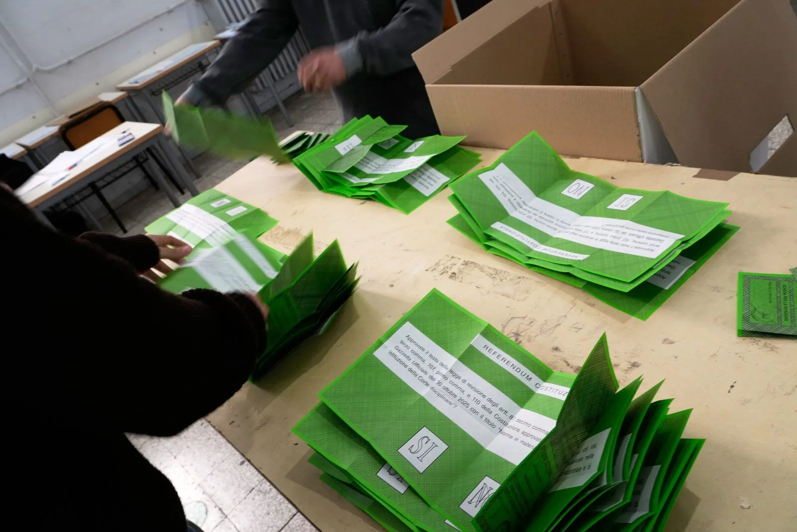 Περίπου 50 δικαστές συγκεντρώθηκαν στο δικαστήριο της νότιας πόλης της Νάπολης για να παρακολουθήσουν την καταμέτρηση και άρχισαν να τραγουδούν τον αντιφασιστικό ύμνο της αντίστασης «Bella Ciao» όταν έγινε σαφές ότι η κυβέρνηση είχε χάσει.